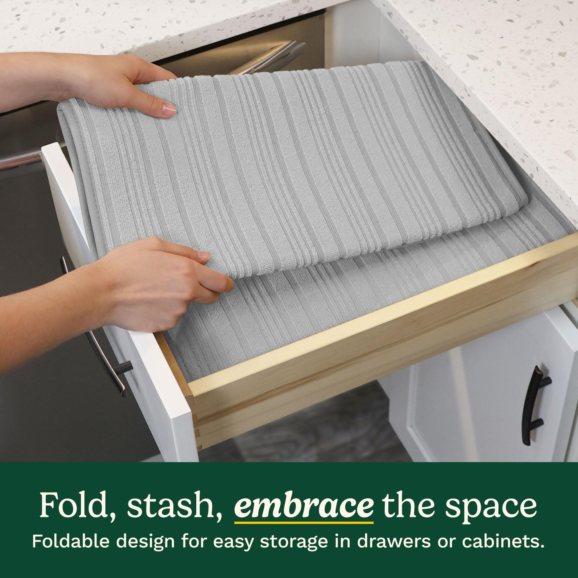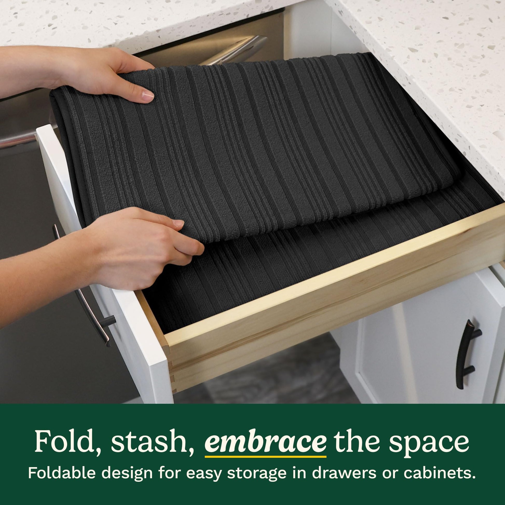 - MAXIMUM ABSORBENCY FOR A CLEANER KITCHEN – These ultra-absorbent microfiber dish drying mats efficiently soak up water from dishes, pots, and pans, ensuring that both your dishes dry effectively and your countertops stay clean, dry, and free from water spots or stains.