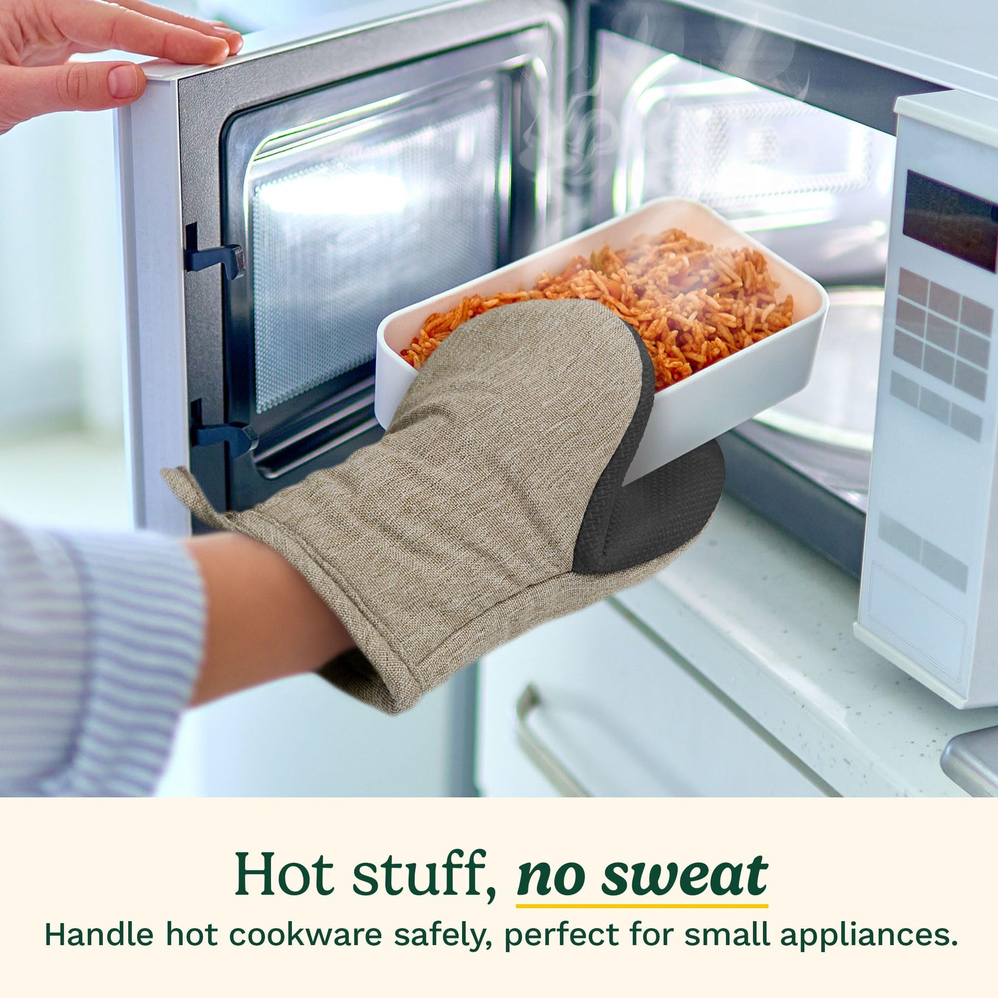 - OPTIMAL HEAT PROTECTION: These mini oven mitts are designed with a non-slip neoprene palm that offers secure grip and high heat resistance (up to 350 degrees). Whether you're pulling a hot dish from the toaster oven or handling a sizzling pan, these mitts provide essential protection for all your kitchen cooking and baking needs.